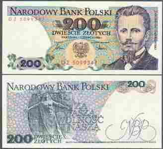 200 złotych 1986 stan bankowy UNC seria DZ