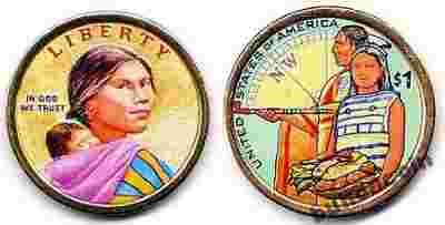 2014 1$ USA NATIVE AMERICAN kolor obustronny