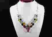 Niepowtarzalny srebrny naszyjnik z bardzo efektownym onyksem, rubinem, agatem i kwarcami
