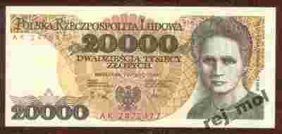 Banknot PRL 20 000 zł.