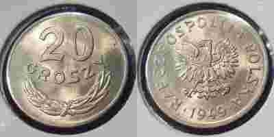 20 groszy 1949 MN stan menniczy, piękna , połysk !