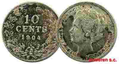 20.HOLANDIA, WILHELMINA, 10 CENTÓW 1904