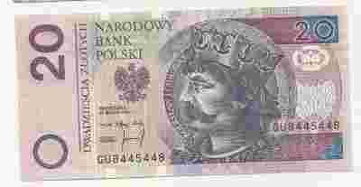 20 PLN seria GU[zasłonięte]84454 UNC rok 1994