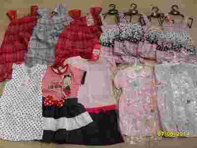 Sukienki oraz komplety, w większości dziewczęce w różnych wzorach, kolorach, rozmiarach z krótkim rękawem oraz na ramiączka.