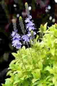 Niziutka, wieloletnia bylina, kapitalnie wybarwiona - złote liski i błękitne kwiatki - dorastająca do 20cm-mało wymagająca. Długo kwitnie- od czerwca do sierpnia. Niebieskie kwiatki przypominają malutkie kolby kukurydzy - wąskie, delikatnie wybarwione - fajny kolorek - osiągają długość około 10cm.