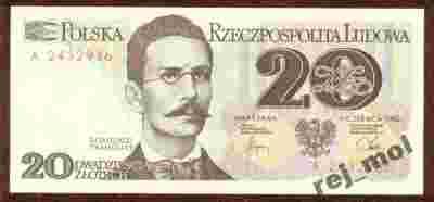 20 zł. 1982 r. ser. A UNC pierwszy - b. rzadki