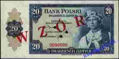20 zł. Kopia Wzoru banknotu z 1939 roku
