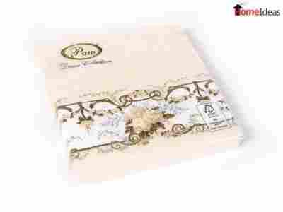 Serwetki są solidne - trzywarstwowe. Posiadają wysokiej jakości ozdobny nadruk oraz ozdobny - wytłoczony wzorek.