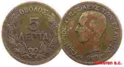 21.GRECJA, JERZY I, 5 LEPTA 1869 BB