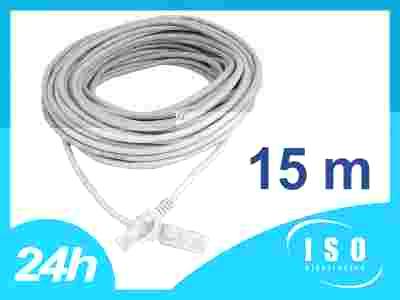 Kabel sieciowy LAN Osłona zewnętrzna: PVC Zakończenie wtykami RJ45 ZALEWANE FABRYCZNIE WTYCZKI Długość 15 m Długość wtyku 40mm Kolor szary