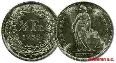 22.SZWAJCARIA, 1/2 FRANKA 1956