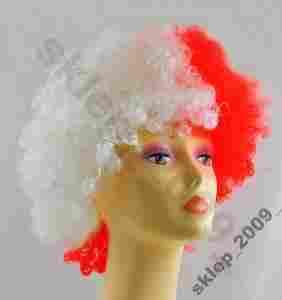 247~ PERUKA AFRO BIAŁO CZERWONA POLSKA FLAGA