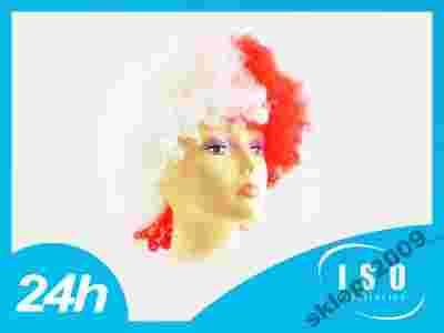 247~ PERUKA AFRO BIAŁO CZERWONA POLSKA FLAGA