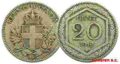 24.WŁOCHY, VITT.EMANUEL III, 20 CENTESIMI 1919