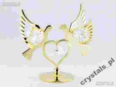 24K Złote GOŁĄBKI na sercu SWAROVSKI Ślub