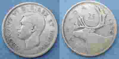 25 cents,Kanada 1943,srebro,ladny stan.