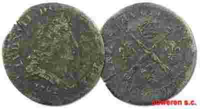 25.FRANCJA, LUDWIK XIV, 5 SOLI 1702 X rzadsza