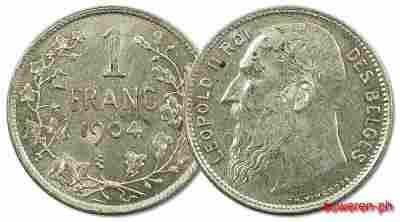 27.BELGIA, LEOPOLD II, 1 FRANK 1904 DES