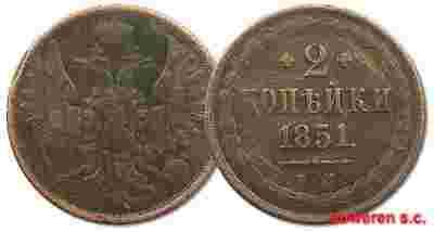 28.ab.ROSJA, MIKOŁAJ I, 2 KOPIEJKI 1851 EM