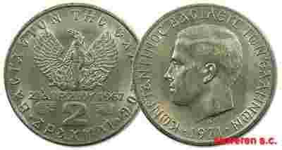 28.GRECJA, CONST.II, 2 DRACHMY 1971