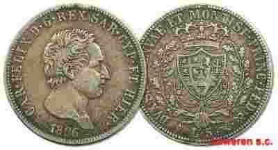 28.SARDYNIA, CAROL FELIX, 5 LIROW 1826 rzadka