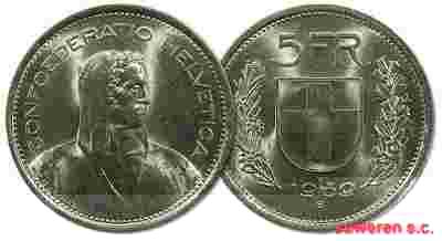 28.SZWAJCARIA, 5 FRANKÓW 1969