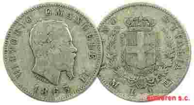 28.WŁOCHY, VITT.EMANUEL III, 1 LIRA 1863 M