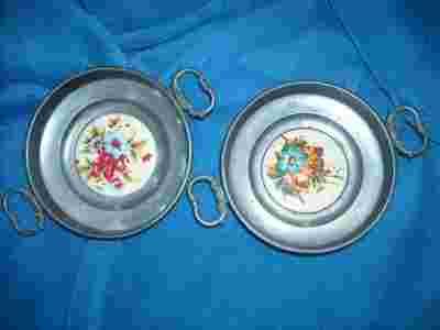 2 cynowe miseczki z ceramiczną wstawką