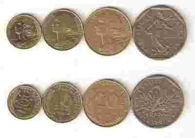 2 Franki,-20,10,5centime-komplet 4szt