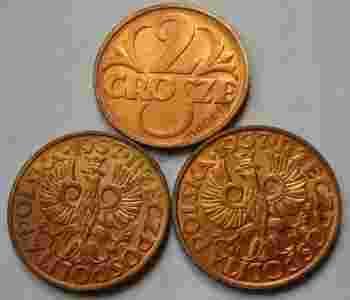 2 gr. grosze 1937 mennicza mennicze z rolki