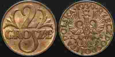 2 grosze 1939 rok - menniczy egzemplarz