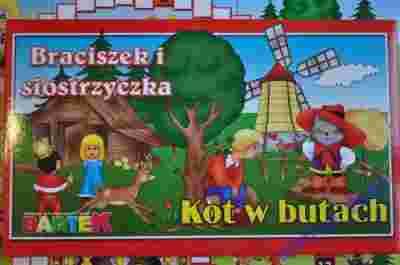 Na tej aukcji oferuję 2 Gry Planszowe Kot w butach / Braciszek i Siostrzyczka - gry firmy "Bartek" to przepiękne kolorowe plansze i wspaniała zabawa dla dzieci oparta na najpopularniejszych bajkach. Gra dla 2-4 graczy w wieku 5-99 lat.