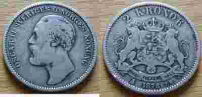 2 korony 'OSCAR II' 1878 rok srebro 800 Szwecja