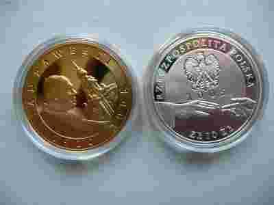 2 monety 10 zł Papież JP II Ag platerowane złotem