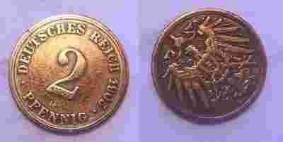 2 PFENNIGI 1905 D CESARSTWO NIEMIECKIE