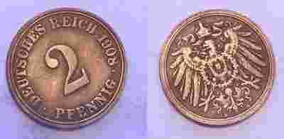 2 PFENNIGI 1908 A CESARSTWO NIEMIECKIE