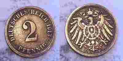 2 PFENNIGI 1913 D CESARSTWO NIEMIECKIE