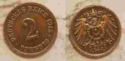 2 PFENNIGI 1915 F CESARSTWO NIEMIECKIE