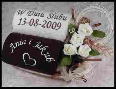 2 RĘCZNIKI Z DEDYKACJĄ PREZENT ŚLUB HAFT HAFTEM