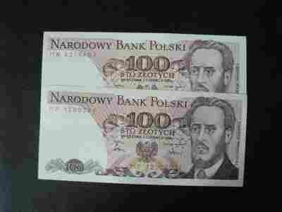 2 x 100 zł 1986 r serie MW, MP UNC