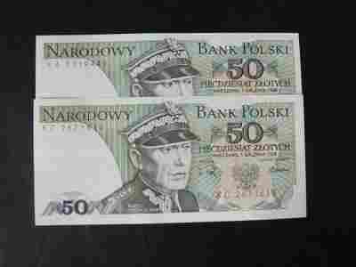 2 x 50 zł 1988 r serie KA, KC UNC