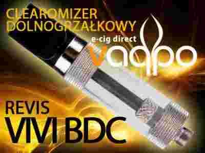Revis VIVI BDC ma zwartą budowę, powiększoną średnicę i pasuje do baterii o większych szerokościach. Średnica clearomizera - 16,5mm sprawia, że idealnie prezentuje się na większych bateriach (baterie o pojemnościach 1300, 1600 mAh). Jednak należy pamiętać, że - podobnie jak w clearomizerach Vivi Nova - najlepiej wygląda na baterii posiadającej osłonkę na gwint.