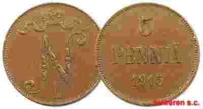 2.zz.FINLANDIA, MIKOLAJ II, 5 PENNIA 1915