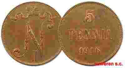 2.zz.FINLANDIA, MIKOLAJ II, 5 PENNIA 1916