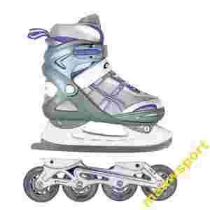 Regulowane łyżwy, które dzięki wymiennej płozie wraz z końcem sezonu łatwo przemienić w pełnowartościowe rolki.