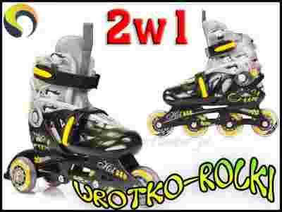 Wyjątkowe wrotko-rolki posiadające kółka wykonane z kauczuku, co jest prawdziwym wyjątkiem dla tego asortymentu. HIT !!! Jazda na takich kółkach jest bardziej stabilna, wygodna i bezpieczna niż na kółkach plastikowych.