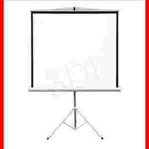 Ekran na trójnogu o powierzchni matt white z czarnymi ramkami dookoła ekranu
