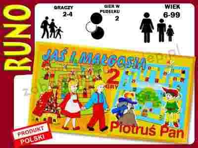 2 tradycyjne gry planszowe polskiego producenta: JAŚ I MAŁGOSIA oraz PIOTRUŚ PAN Ciekawe gry dla dzieci wykonane na dużej i grubej planszy, z bajkowymi ilustracjami.