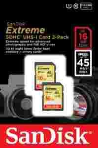 2x Sandisk Extreme SDHC UHS-I 16gb 45MB/s C10