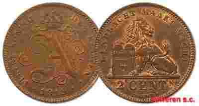 30.BELGIA, ALBERT I, 2 CENTIMY 1919 DER